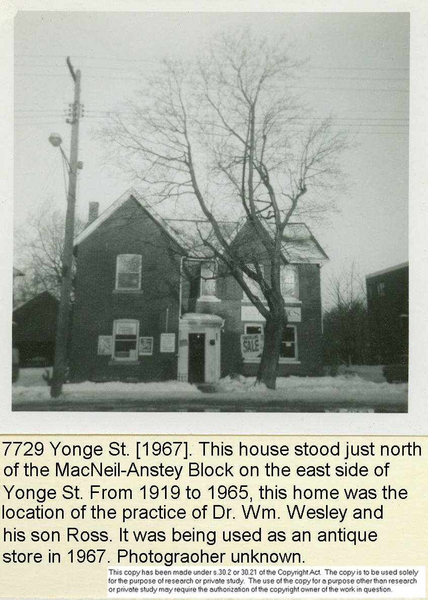 7729 Yonge St. [c.1967]. Former home and practice of the doctors Wesley. Photographer-- unknown.