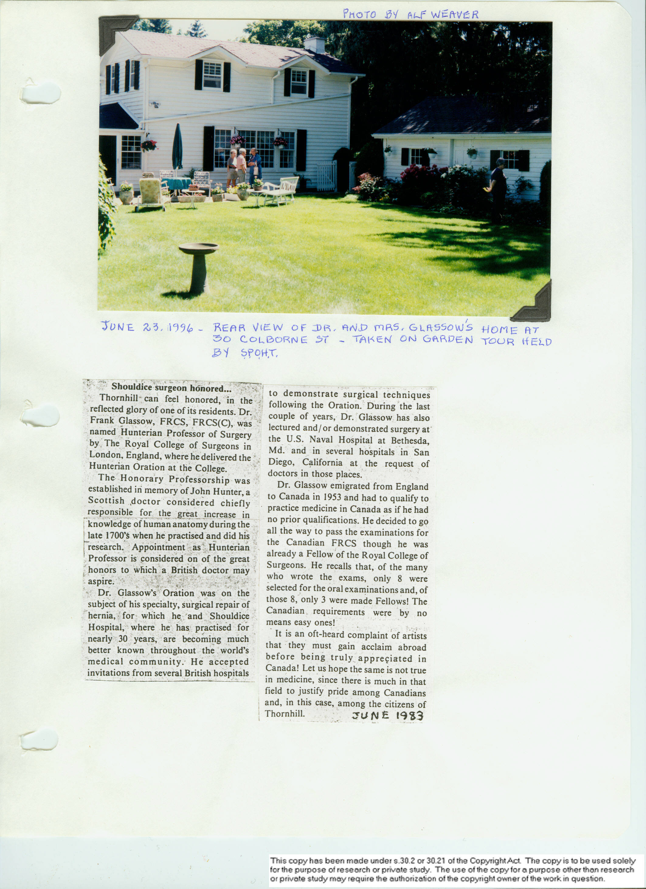 p. 047 - 30 Colborne St., Ramsden/ Kaiser/ Swan/ Lennox/ Glassow home (photo and article). LIBRARY document |