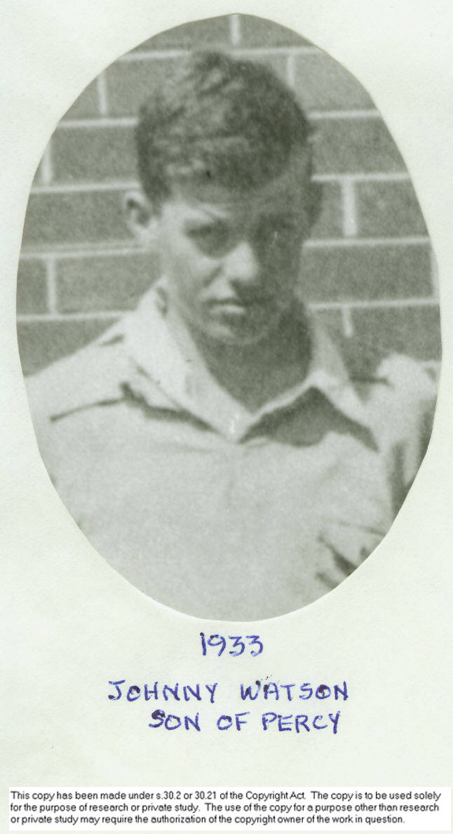 Johnny Watson, son of Percy [1933]. Photographer-- unknown. LIBRARY document |