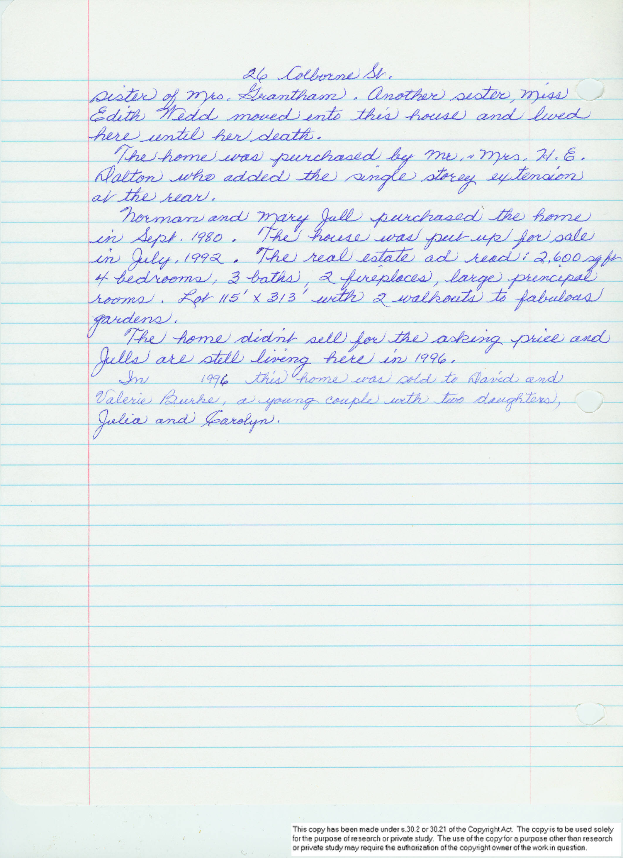 p. 038 - 26 Colborne St., "Double Cottage" (notes by Laura Weaver, pt.2).